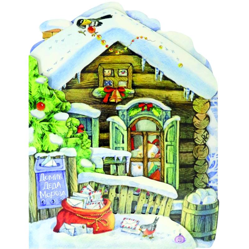 Фигурные страницы из плотного картона выглядывают одна из-за другой и показывают разные уголки в доме и вокруг него. Листая книжку, читатель словно заглядывает в ярко украшенную комнату и потом выходит во дворик - здесь уже ждут олени, готовые везти подарки.