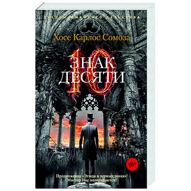 Хосе Карлос Сомоза — блистательный испанский писатель, чьи романы переведены на несколько десятков языков, лауреат премии «Золотой кинжал» и обладатель множества других литературных наград, создатель многослойных миров, где творятся очень страшные дела, автор фантастических, философских, исторических триллеров и хорроров. В «Знаке Десяти», продолжении «Этюда в черных тонах», возвращаются инфернально проницательный мистер Икс и его верная, ироничная, сильная и чувствительная медсестра Энн Мак-Кари, а вместе с ними в непредсказуемой интриге замешаны актеры, бутафоры и зрители жестоких подпольных театров, известные психиатры и, разумеется, Артур Конан Дойл.