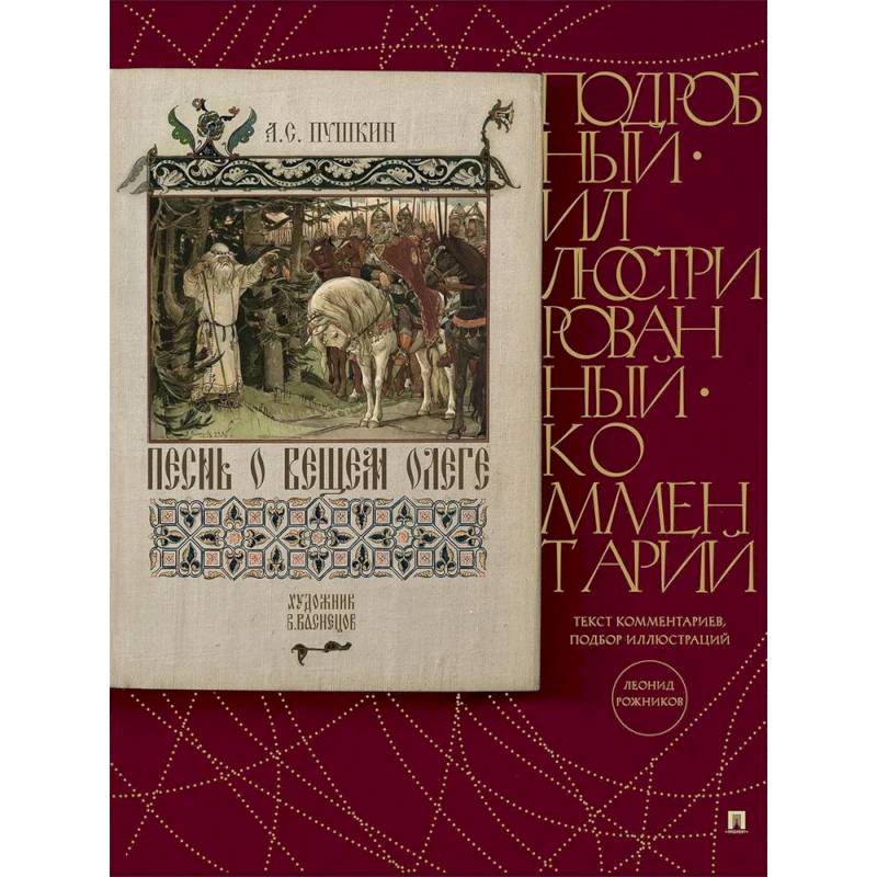 Книга в книге ; включает в себя текст знаменитой баллады Александра Сергеевича Пушкина ;Песнь о вещем Олеге ; и постраничные пояснения к сложным терминам и именам, встречающимся в повествовании. Оформление внутренней книги (за исключением текста стихов ) воспроизводится по юбилейному изданию 1899 года с классическими иллюстрациями Виктора Васнецова.