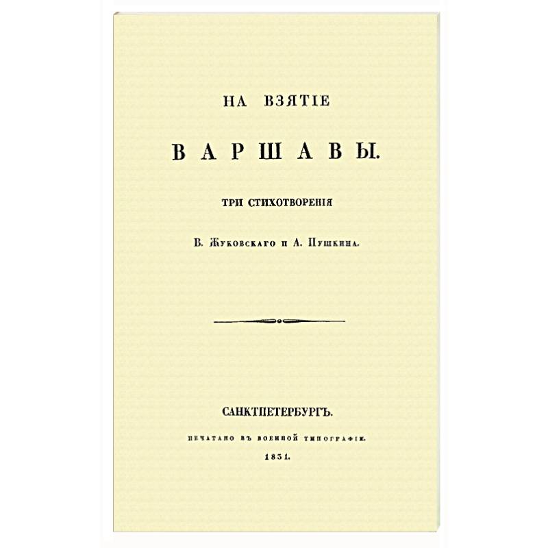 Репринт с издания. Три стихотворения В. Жуковского и А. Пушкина. Санкт-Петербург, печатано в Военной типографии, 1831. Оригинал — чрезвычайная редкость! Тираж 30 экз. выполнен по технологии print-on-demand